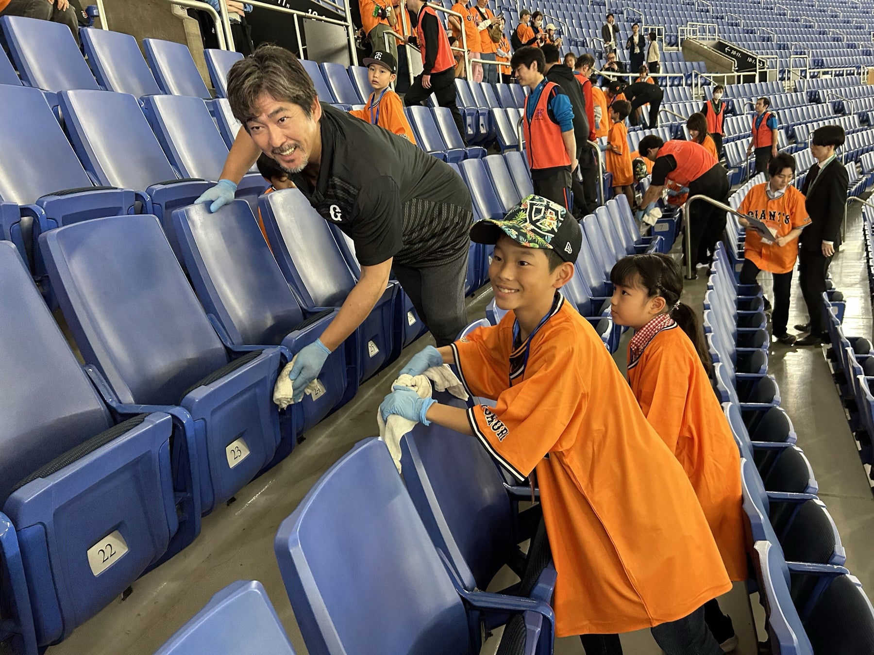 ■読売ジャイアンツOB4選手が子どもたちと清掃活動!清掃した椅子の数は487席!