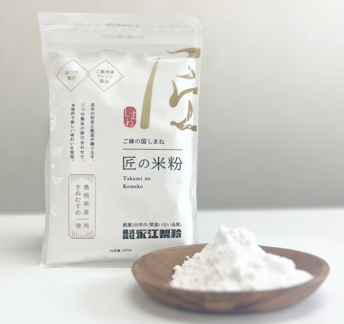 創業150年の歴史と伝統を受け継ぎながら、新しい挑戦を続ける永江製粉が自信を持って『匠の米粉』を発売いたしました。島根県産米「きぬむすめ」の豊かな風味と、新しい美味しさを、健康志向の方や料理好きの皆様、そして子育て世代の食卓にお届けできるよう今後も発信してまいります。