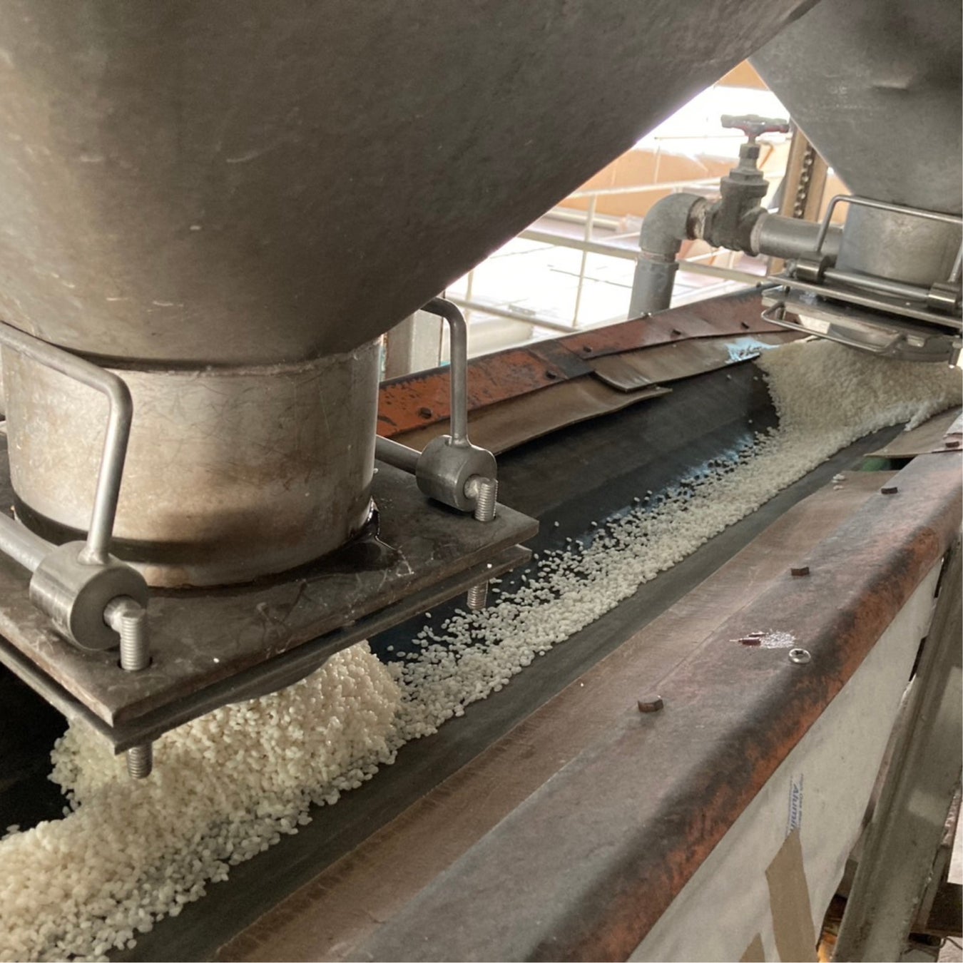 2時間おきに一晩浸漬した米と、当日洗米した米を独自の配合でブレンドし、和菓子づくりに適した水分率に仕上げています。