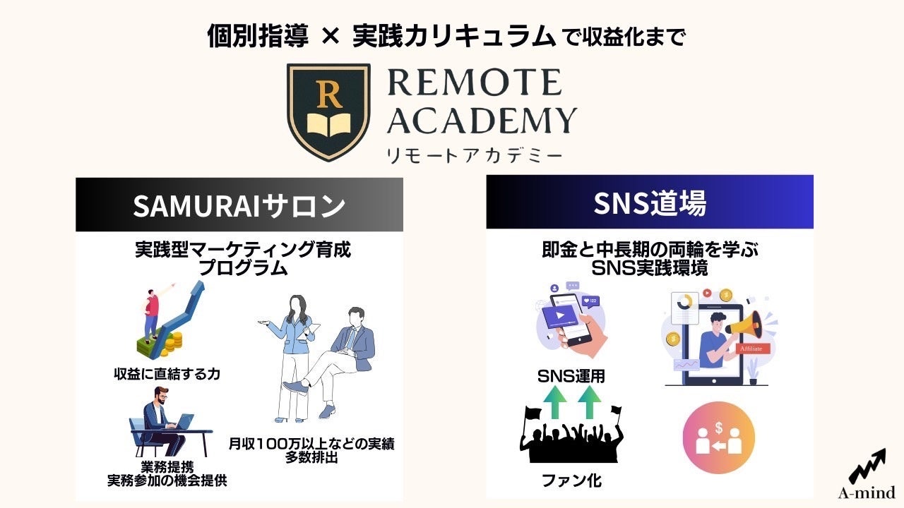 2025年4月1日株式会社A-mind(本社:東京都新宿区、代表取締役:桑田渚生)は、個人の時代に即したオンライン型の人材育成アカデミー『個別指導学院リモートアカデミー』を正式にローンチいたしました。