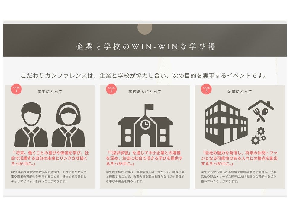 「探求学習」と「働く大人の姿」で未来を切り開く。こだわりカンファレンスは、学生が輝く社会人の姿を間近に見ることで、働くことの楽しさや意義を学び、主体的な生き方を考える貴重な機会を提供するイベントです