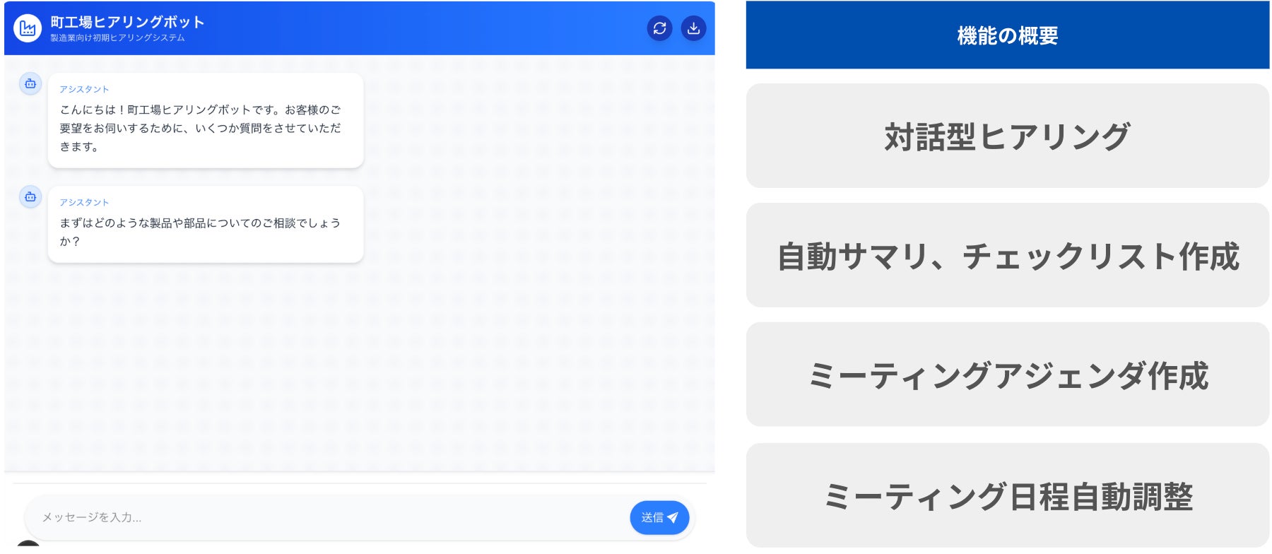 1. AI対話型ヒアリング:AIが業界特化、会社特有のシナリオで質問を自動生成し、必要情報を漏れなく取得