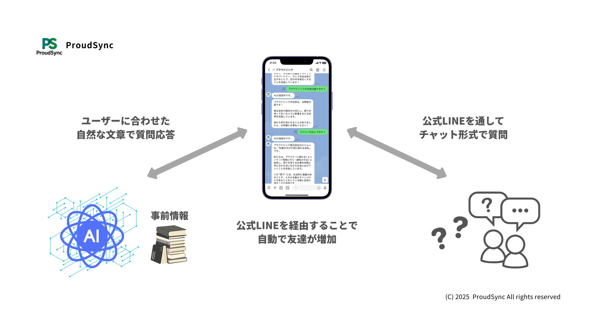 プラウドシンクが開発・提供する「LINE × AIチャットボット」は、以下の3つの軸を中心に構成されています。