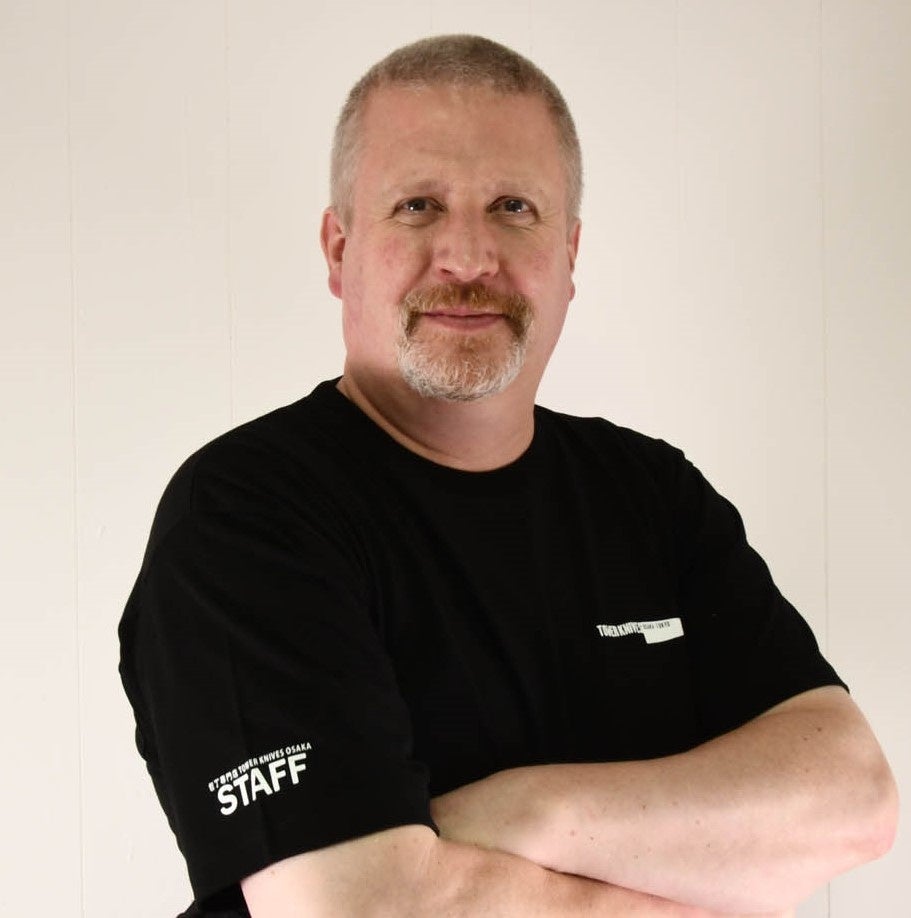 講師略歴:カナダ生まれ、デンマーク育ち。学生時代に日本の文化に興味を持ち、ワーキングホリデーを利用して23歳で来日。その後、語学教師をはじめ、いくつかの職業を経験した後、大阪府堺市の刃物メーカーに勤務。日本製の包丁のすばらしさ、それを作る職人の想いを多くの人々に知ってもらうため、2012年大阪・新世界に「包丁専門店タワーナイブズ大阪」、2015年東京ソラマチに「包丁専門店 タワーナイブズ東京」を開業。英語とその他の言語(フランス語、中国語、スペイン語、デンマーク語)での接客を可能とし、一般の方からプロの料理人まで幅広い層から強く支持されている。