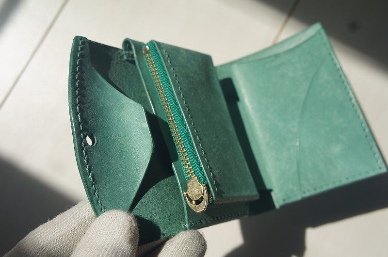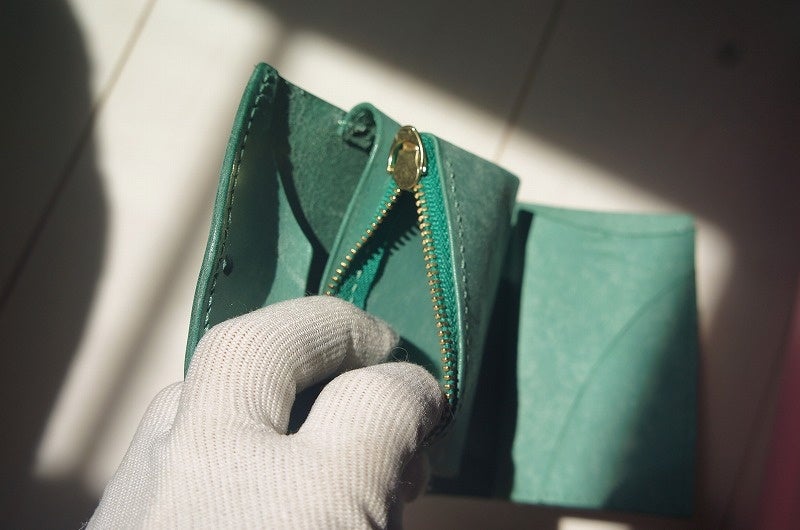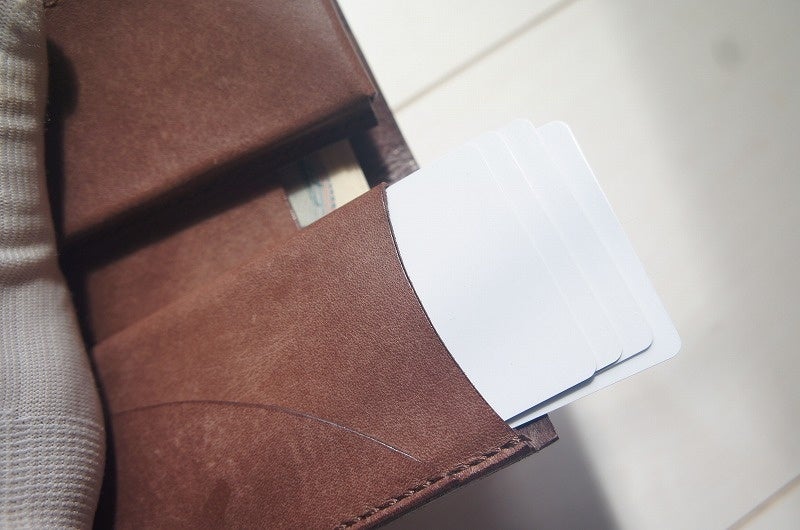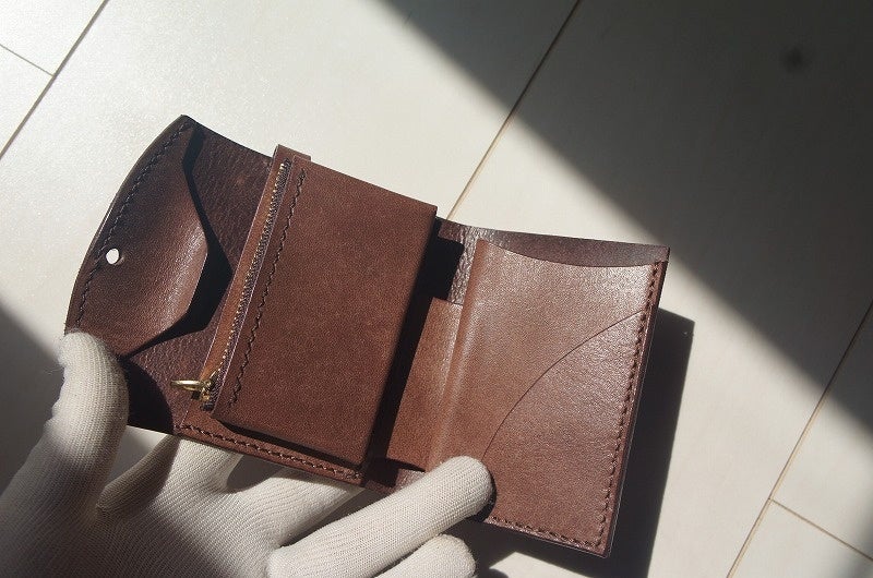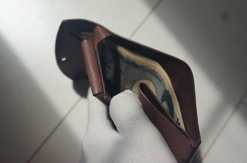 ほどよいと感じられる機能性は、財布としての最低限の機能を押さえつつ、不自由なく使える実用性を持っている財布だと考えました。そこで、小ぶりな小銭入れと、3~4枚程度入るカード入れ、折らずに収納できる紙幣入れの構成に決めました。