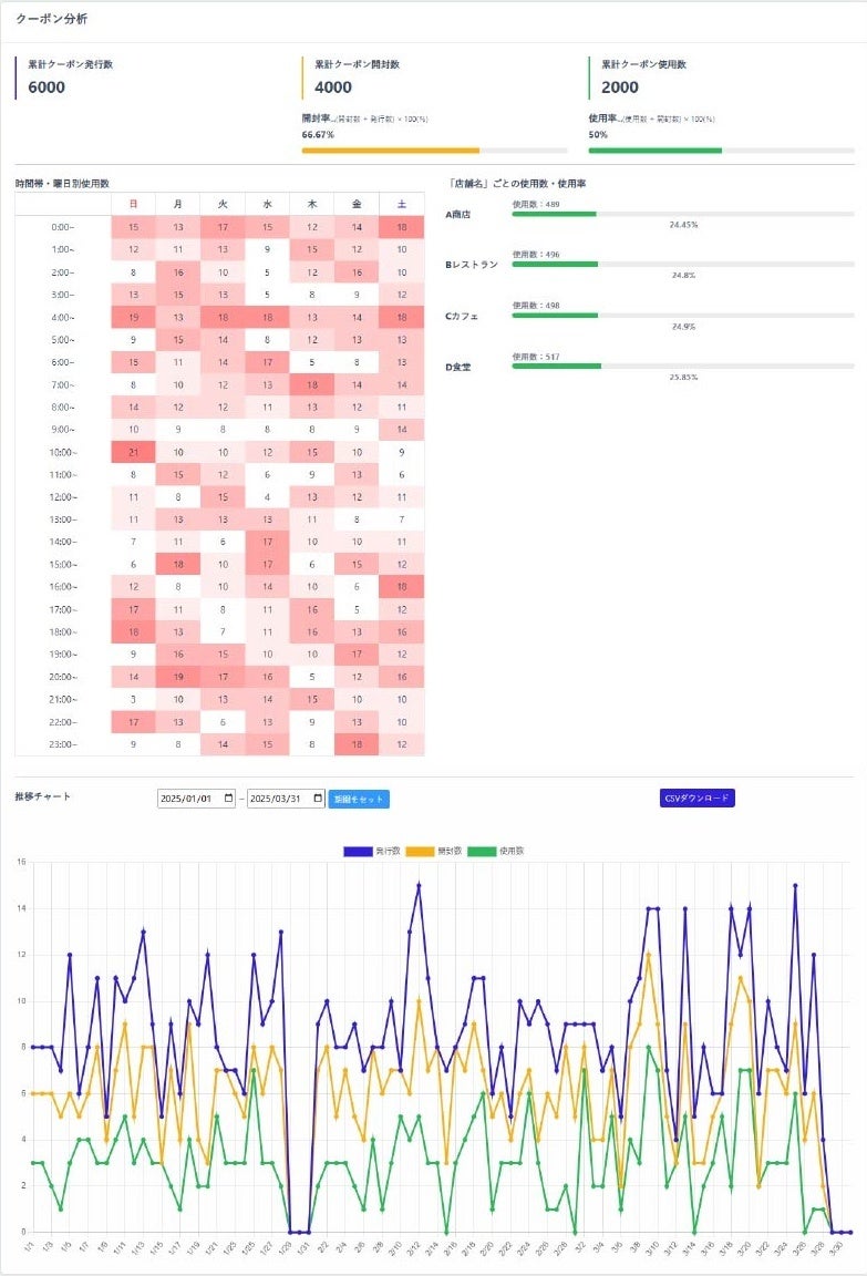 これにより、クーポンの利用傾向を的確に把握し、より効果的なプロモーション施策の立案が可能になります。