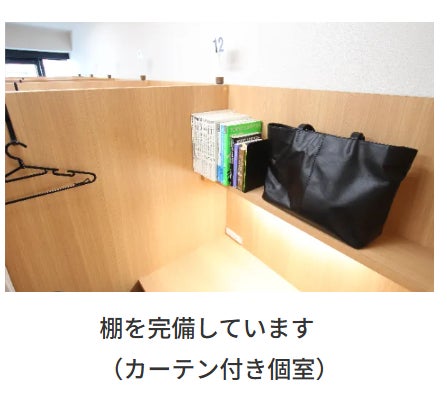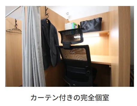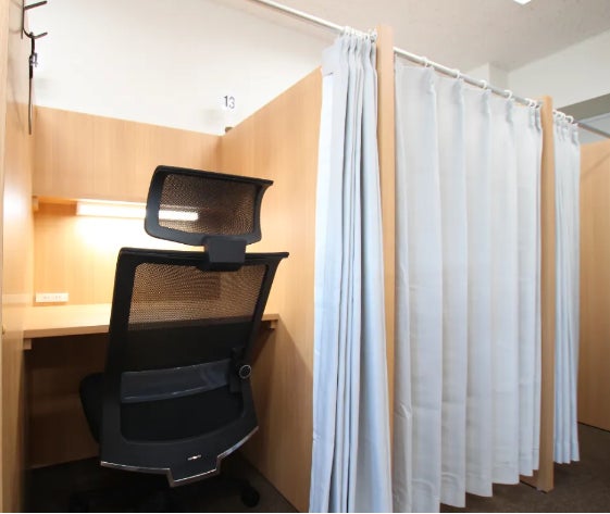 カーテン付きの個室・パーテーション席の2種類をご用意。オープニングを記念し、5月31日まで「初月無料・翌月半額キャンペーン」を実施