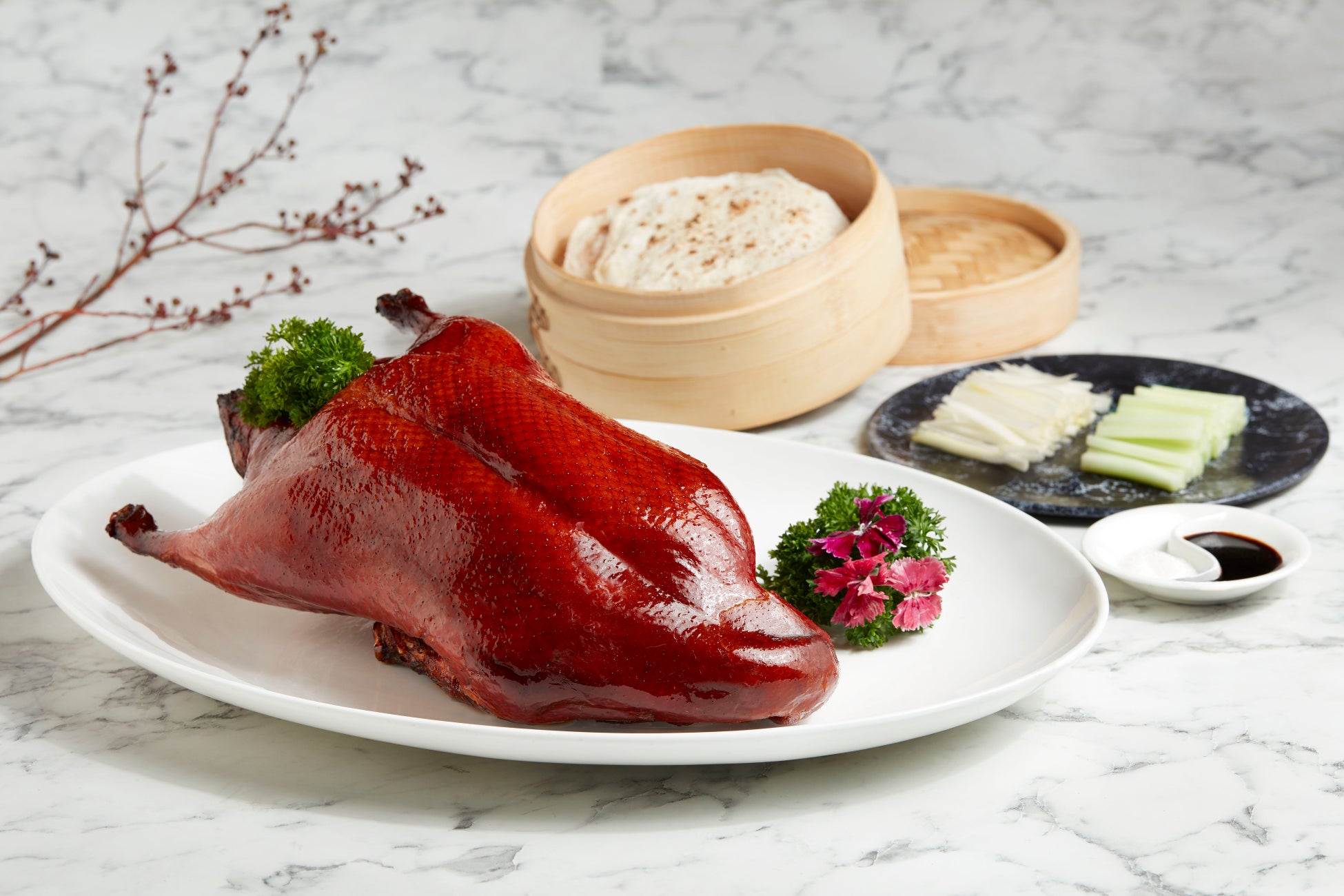 約40日もの間、ゆっくりと熟成させた最高品質のダックを、熟練の技で香ばしく焼き上げ極薄の皮を自家製クレープとともにサーブいたします。