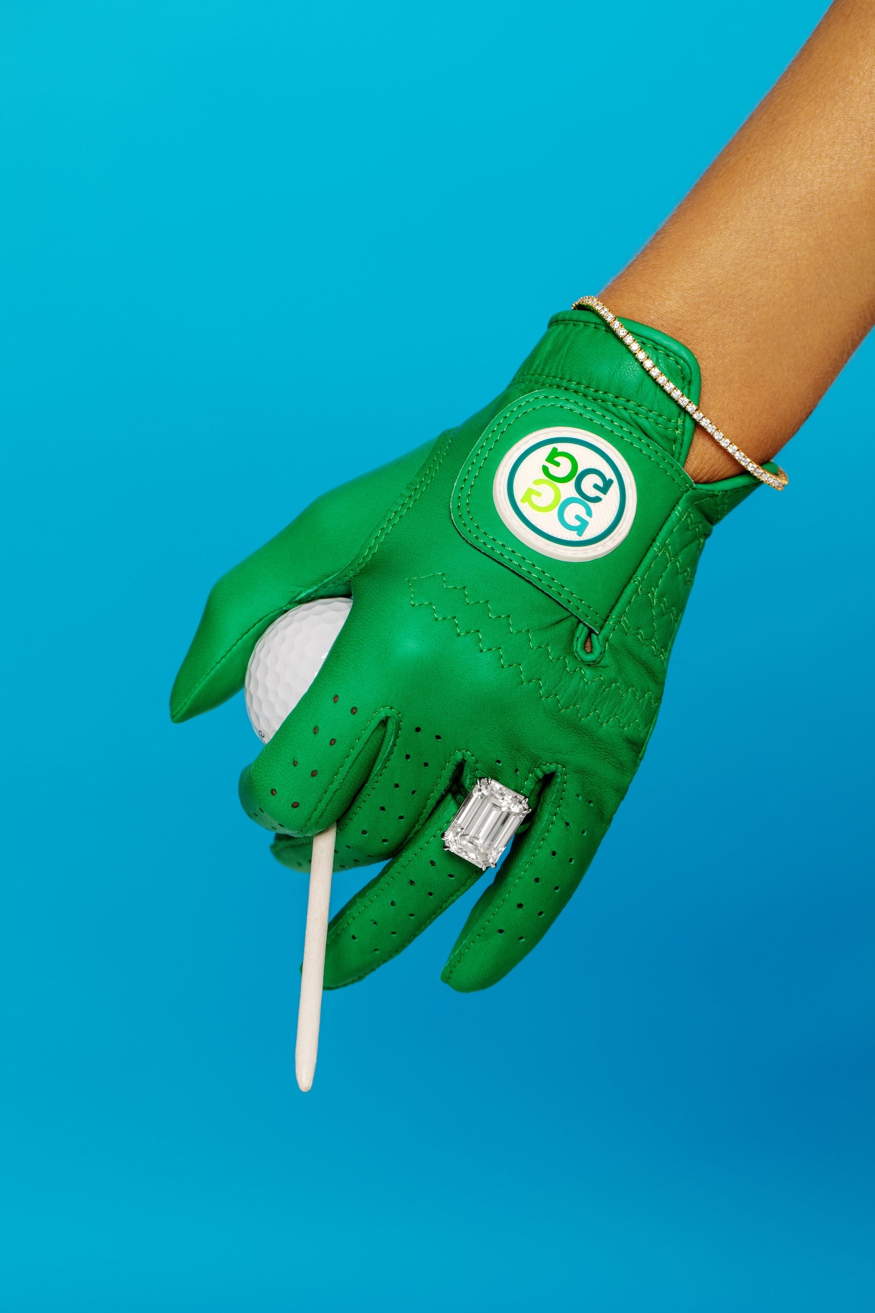 25春夏のシーズンカラーを採用したヴィーガンレザーのセットアップや小物など、ワントーンコーディネートのゴルフスタイルを完成させるラインナップです。