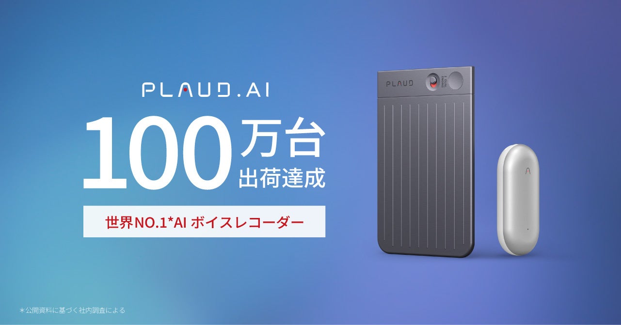 AIボイスレコーダーと業務効率化ソリューションを展開するPLAUD.AI(本社: PLAUD Inc. ・所在地:米国サンフランシスコ)は、この度自社のAIボイスレコーダーの全世界累計出荷台数が100万台を突破したことを発表いたします。