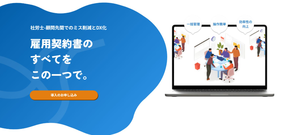 煩雑な雇用契約の管理業務を「契約書作成・送信・電子サイン・契約期間管理」までワンストップで完結。雇用契約管理と社員情報の共有のDX化でバックオフィス業務を大幅に効率化。
