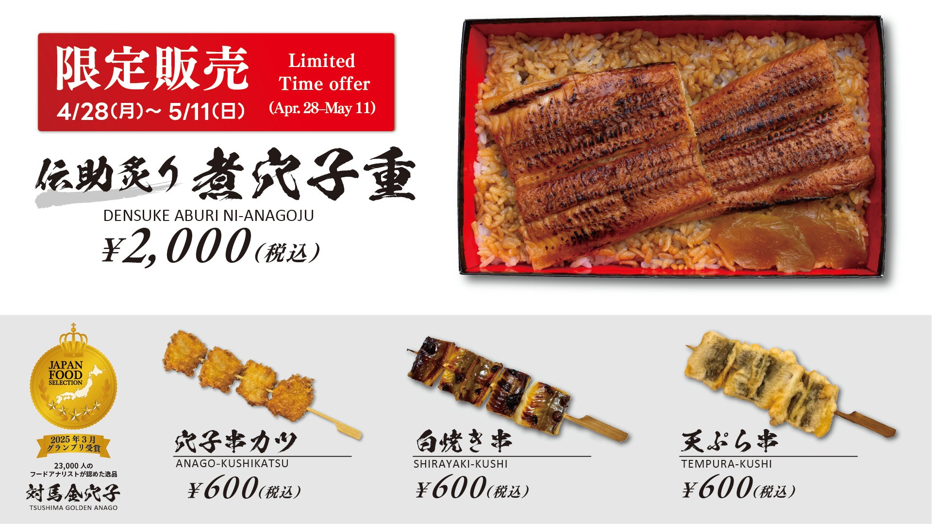 高品質冷凍魚を展開する株式会社ファイン・プランニングのグループ会社である対馬水産株式会社(本社:長崎県対馬市、代表取締役:今田義幸)は、2025年4月28日(月)より、大阪・関西万博「宴~UTAGE~パビリオン」1Fにて、伝助炙り煮穴子重(税込2,000円)を期間限定販売いたします。