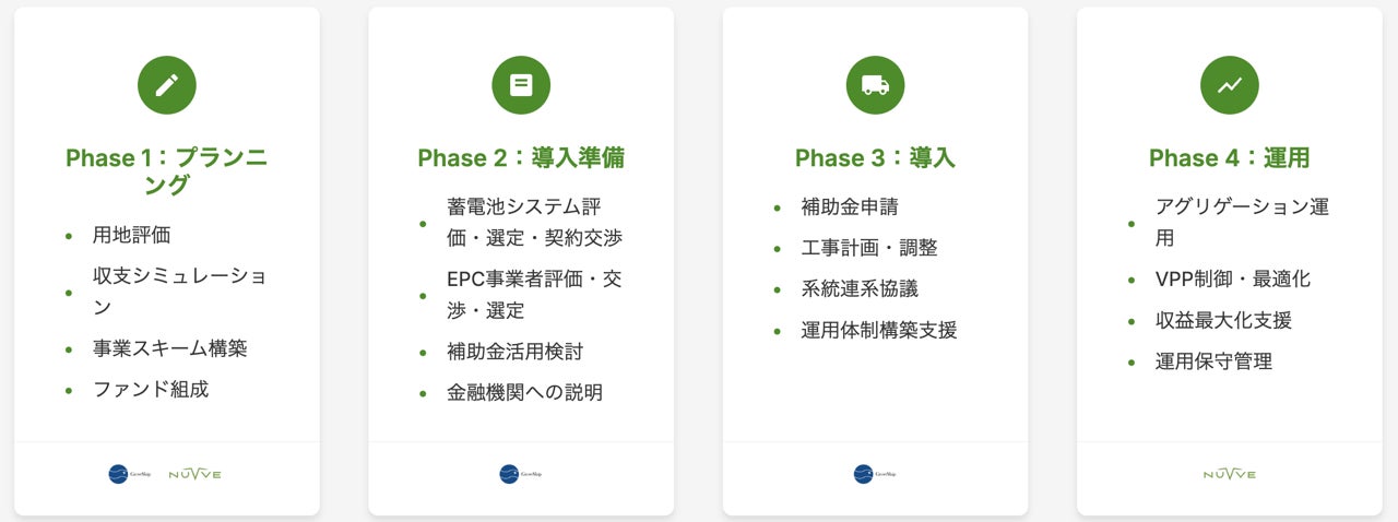 両社は、蓄電所オーナーの課題解決やリスク緩和に寄り添い、計画から導入、運用に至るまでワンストップで伴走してまいります。