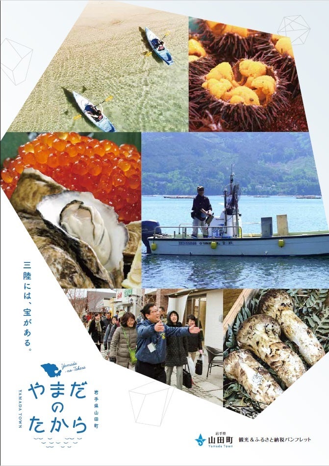 東日本大震災からの復興を経て、次のステージを目指す山田町では、交流人口および関係人口の増加が喫緊の課題です。近年、旅行者のニーズはモノ消費からコト消費へと移行し、その土地ならではの体験や地域住民との交流を求める傾向が強まっています。このような背景から、山田町の豊かな自然や文化を活かした体験観光と、魅力的な地場産品を組み合わせたふるさと納税の情報を集約したパンフレット『やまだのたから』を発行するに至りました 。本パンフレットを通じて、山田町の”宝”に触れていただき、継続的な応援に繋がることを期待しています。