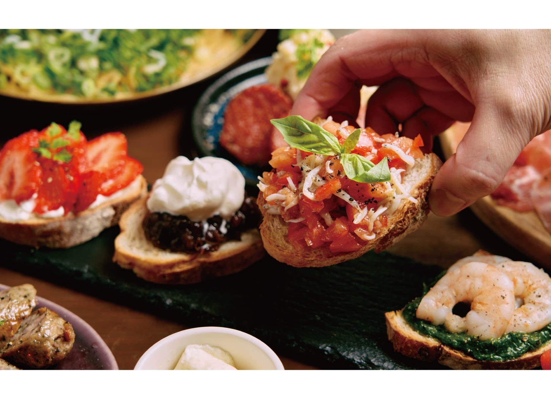 年間250軒を食べ歩く店主が監修、季節で変わる5種類のブルスケッタで“パン飲み文化”を発信。