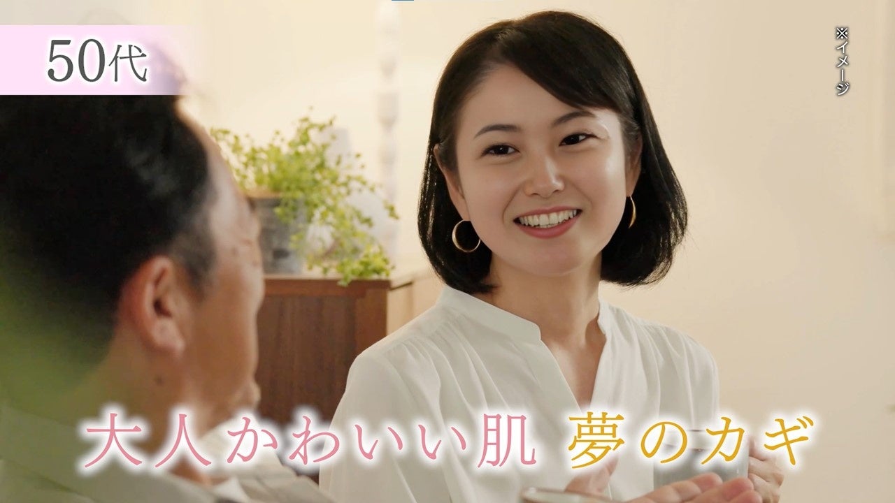 赤ちゃんから50代までの肌の成長を描き、いつまでもかわいらしくきれいでいたいという女性の思いに寄り添う商品だということを、視覚的に訴求。