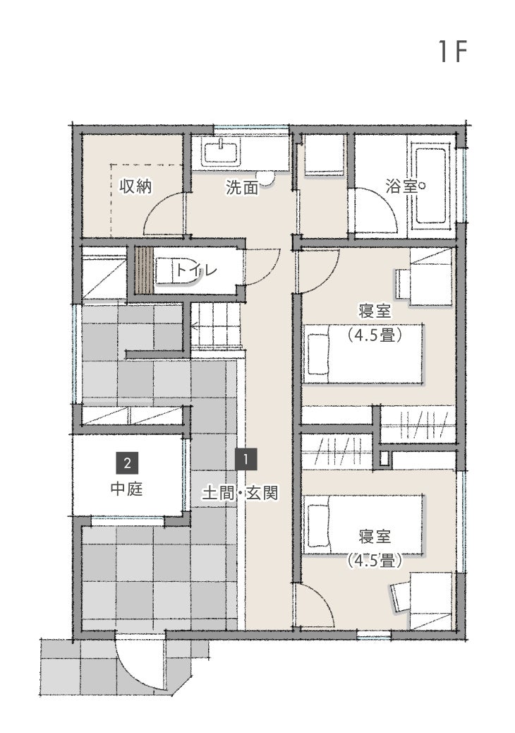 玄関から広がる土間スペースが、内と外を自然につなぎ