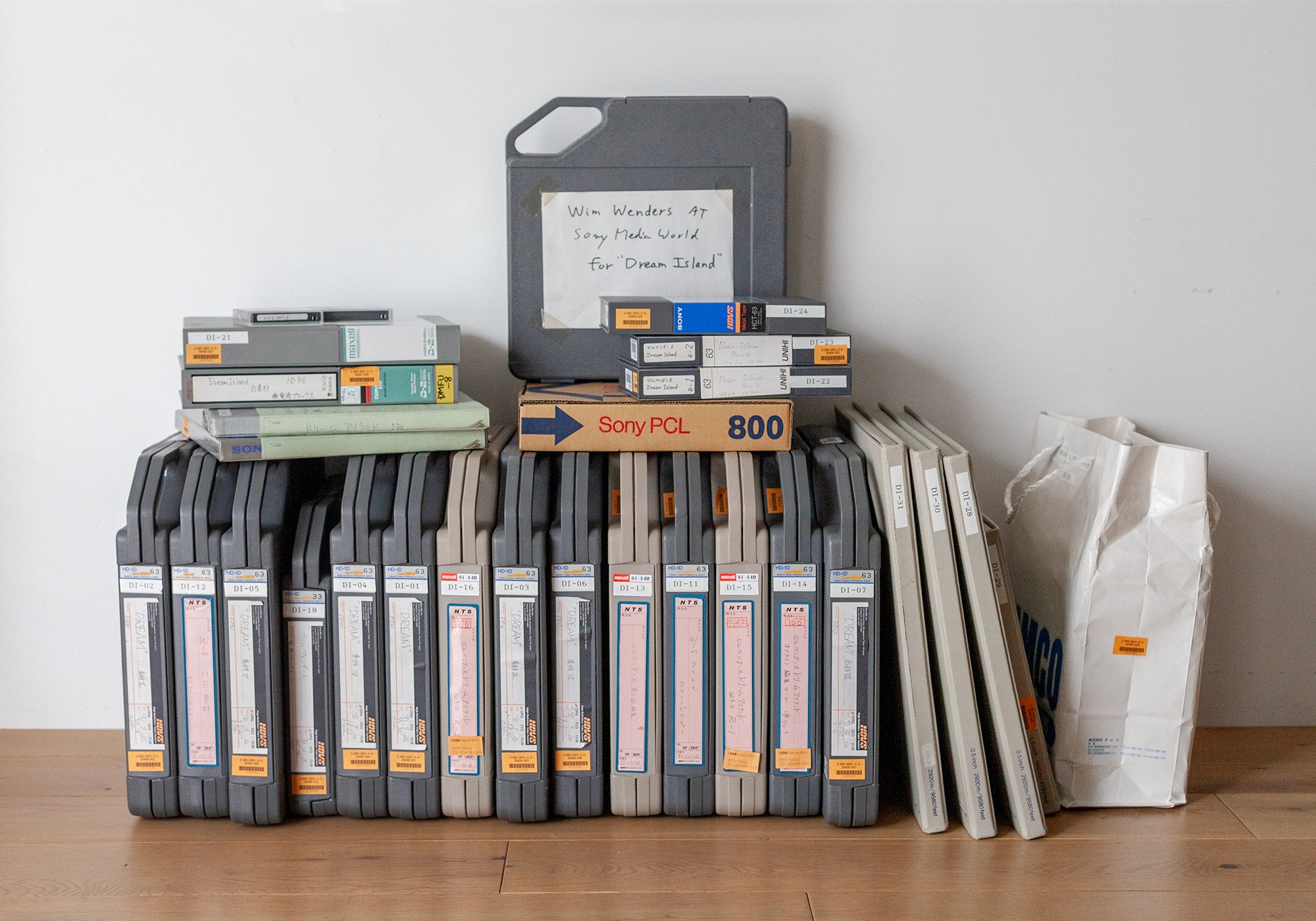 その後、私と御影さんは何度も話し合いを重ね【『ドリーム・アイランド』デジタルリマスター製作委員会】を立ち上げました。幸いなことに、失われたとされていたハイビジョンのオリジナルテープと16ミリフィルムを天王州の倉庫で発見することが出来ました。映像素材は全部で34本(HDTV1 インチ、D1、D2 テープ、16ミリフィルム)。保存状態は良好でしたが、ハイビジョンのアナログ1インチテープは劣化もしやすく、レーザーディスク同様、デジタイズしなければ観ることも編集することもできないことが判明しました。デジタイズには費用がかかります。しかし、デジタル映像黎明期の実験的な表現が隠されたこの作品を、過去のものとして葬り去ってしまうわけにはいきません。