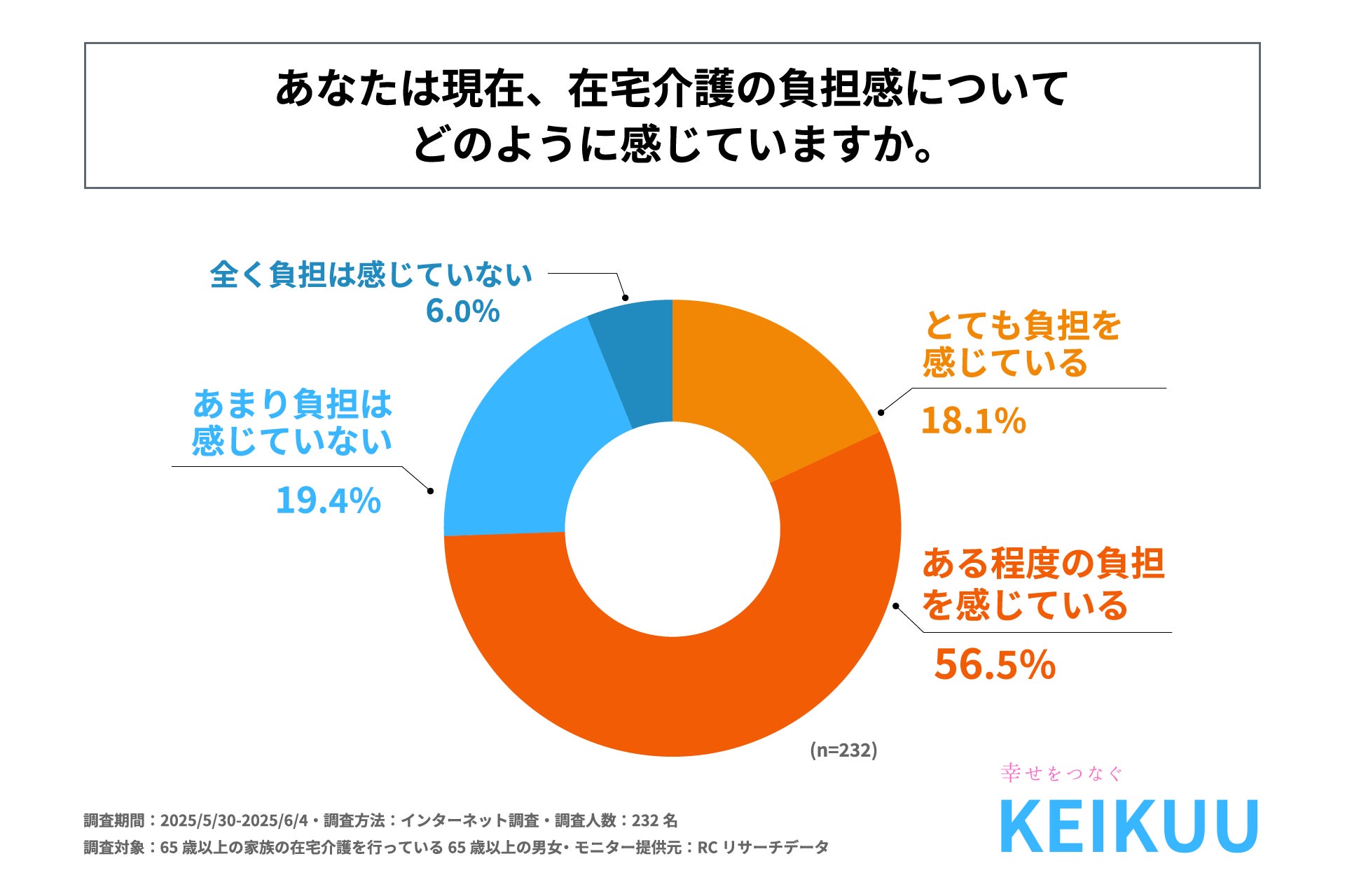 ・65歳以上の家族を在宅介護している65歳以上の男女の7割以上が現在、在宅介護の負担を少なからず感じている