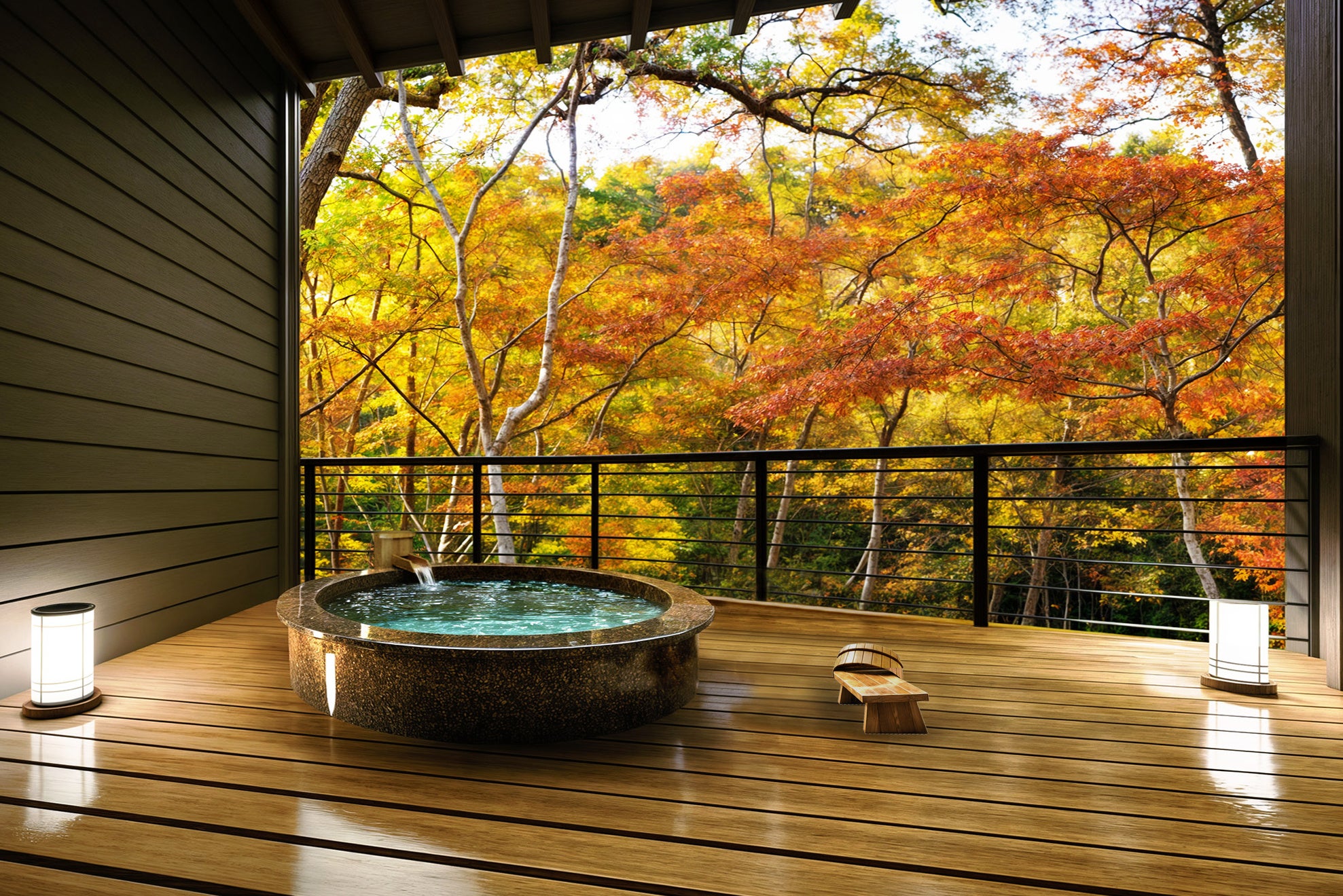プライベートテラスダイニングや客室のテラスで、川のせせらぎに耳を傾けながら