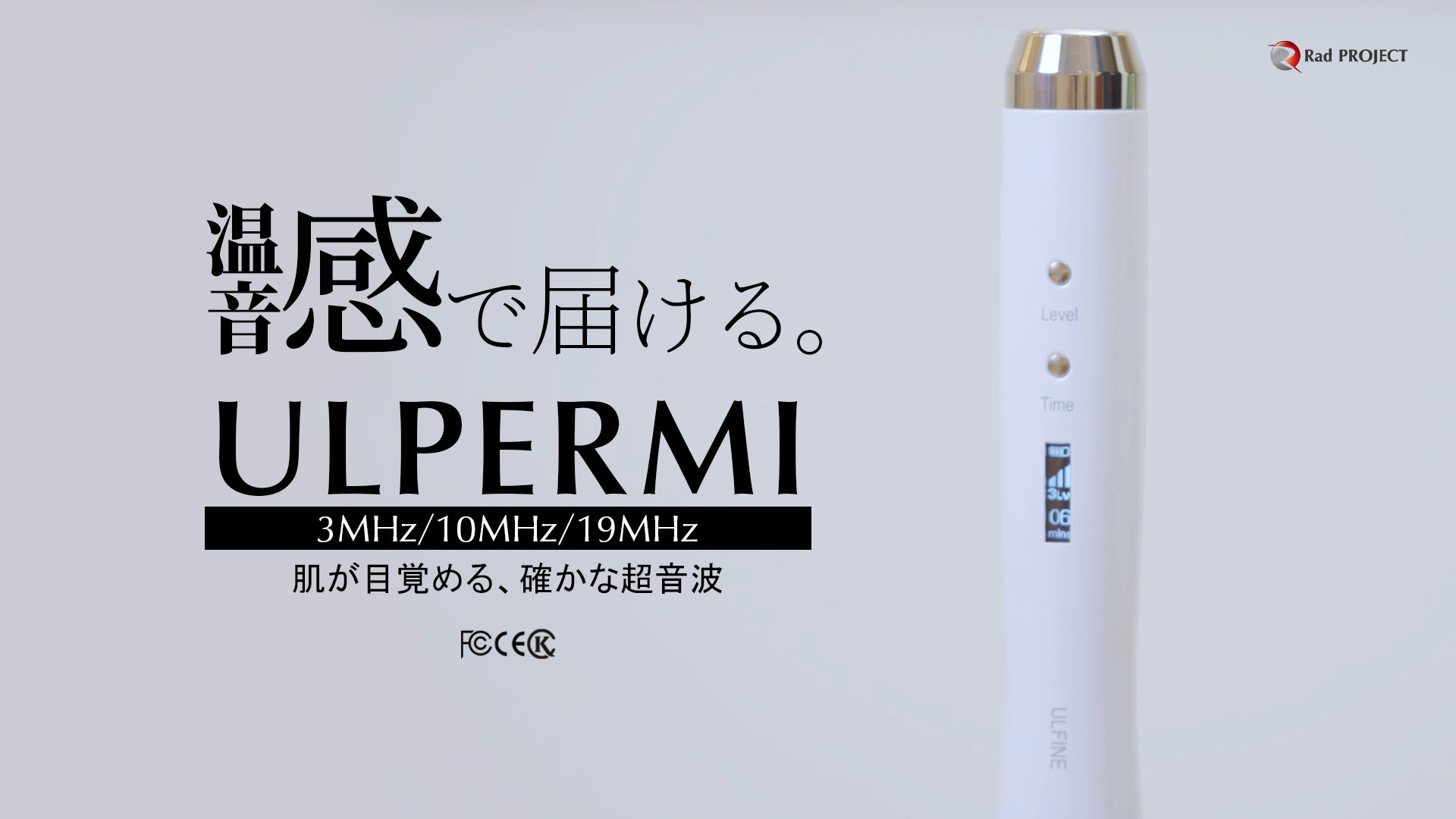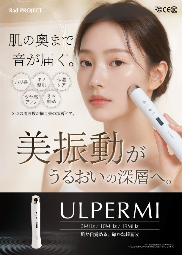 株式会社Rad PROJECT(本社:東京都渋谷区、代表取締役:瀧澤 周)は、韓国と日本の技術融合により開発された精巧設計の次世代超音波美顔器「ULPERMI(ウルパーミ)」を正式発表いたします。3MHz・10MHz・19MHzの3種類の高密度超音波周波数を自動で切り替える独自技術により、肌の深部から表層まで幅広くアプローチ。
