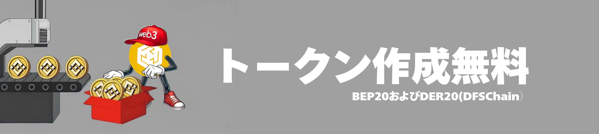 無料トークン生成サポート:BEP20およびDCR20(DFSChain)トークンの生成を永久無料でサポートいたします。 サポート費用:無料