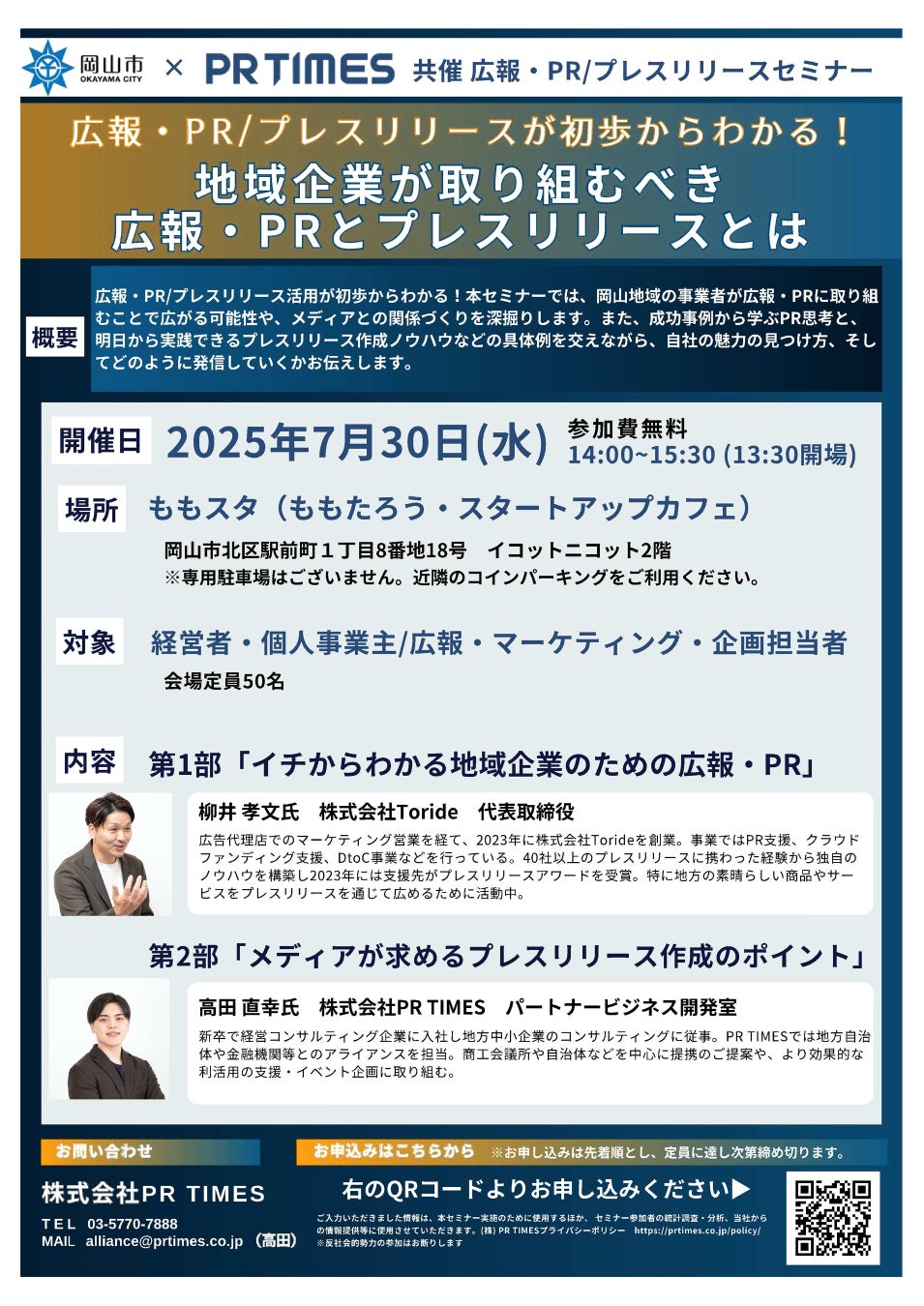 岡山市内中小企業・スタートアップ企業の情報発信を支援するプログラムをスタート~岡山市×PR TIMES情報発信支援プログラム~