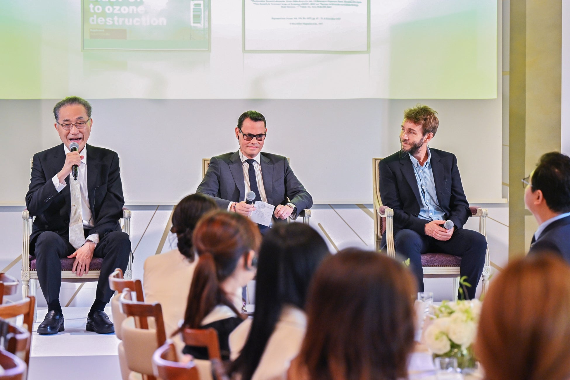 イベントには業界関係者、メディア、インフルエンサーらを招待し、ブランドの歴史や製品哲学を紹介しました。肌のすみずみまで有用成分を届ける独自技術「ActiveAnchor®(アクティブアンカー)」や、医薬品研究を起点とした開発手法に触れながら、ブランドの根幹にある「科学が切り拓く美しさの未来」という理念がプレゼンテーションで発信されました。さらに、「クロトー遺伝子」に関するパネルディスカッションでは、皮膚科学および免疫学の第一人者であり、パリのサン=ルイ病院皮膚科およびINSERM皮膚研究センターの責任者を務めるジャン=ダヴィッド・ブアジズ教授、クロトー遺伝子の発見により老化や長寿研究に革命をもたらした黒尾 誠教授、そして先進的な皮膚科学研究を革新的な製品開発に結びつけてきたGalénic R&D部門の責任者 エリック・ジュルダン博士が登壇し、遺伝子研究の最前線と、それを化粧品開発に応用する可能性について活発な議論が交わされました。