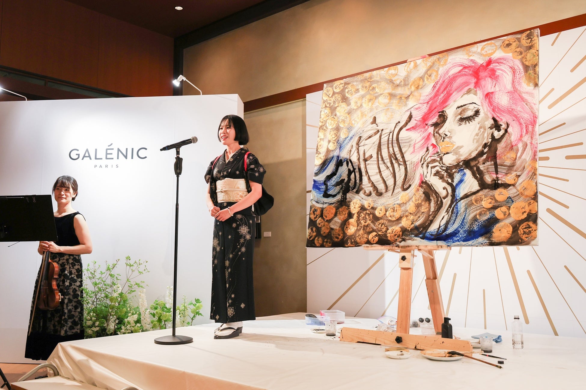 同日夜には同会場にてガラディナーが開催され、業界関係者をはじめ、著名なメディア関係者やセレブリティ、アーティストが一堂に会し、華やかな祝宴のひとときを過ごしました。トークショーやアートパフォーマンスも行われ、終始華やかな雰囲気に包まれました。Galenic Japanの最初の“ヒーローユーザー”の一人として、タレントでモデルの岩間恵さんとモデルの島袋聖南さんがイベント内のスペシャルトークセッションに登場し、自身のスキンケアルーティンや、Galénic製品を実際に使用した感想を語りました。