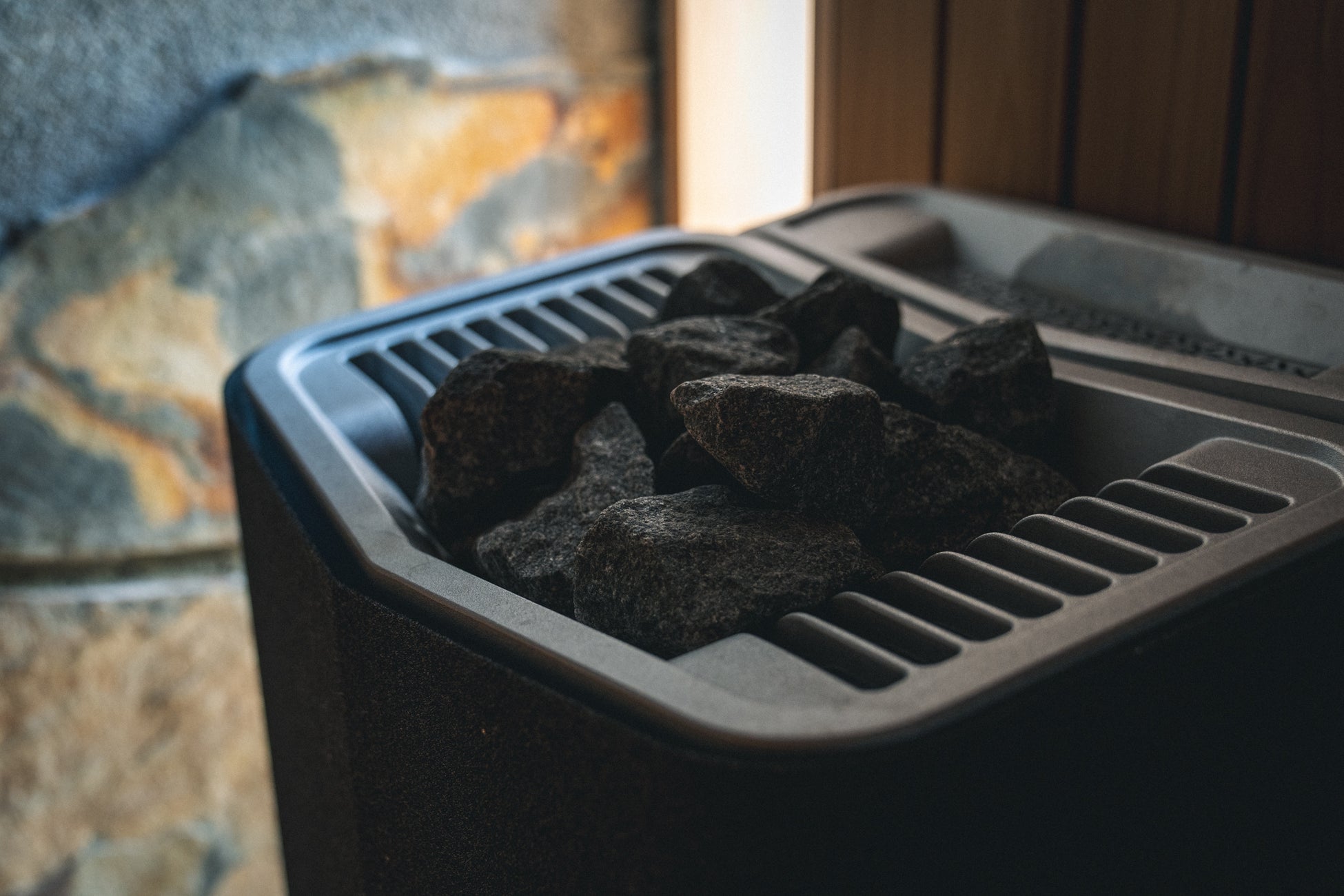 土間テラスにはフィンランド式サウナを設置。北欧のスウェーデンから輸入した本格的なサウナストーブを採用しており、搭載されたスチームジェネレーターから常に蒸気が発生するため、多くのサウナ好きが好む「高湿度」のサウナを手軽に楽しめます。