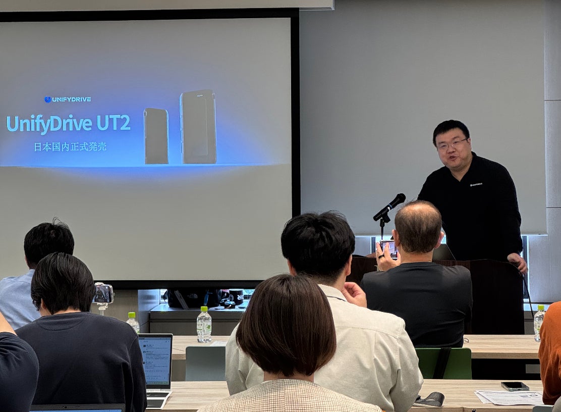 海外で1.5億円超の先行販売実績を誇る次世代ポータブルNAS「UnifyDrive UT2」を展開するUnify Data Technology LLC.(本社:米国カリフォルニア州)が、日本市場に本格上陸するのに先立ち、2025年5月23日(金)、JETRO対日投資・ビジネスサポートセンター(東京・六本木)にてメディア向け体験会を開催しました。