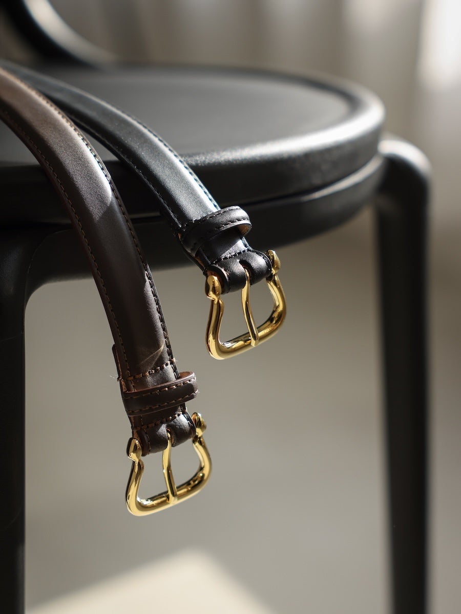スムースレザーベルト「ARCO」は、より穏やかな表情で装いを整える一本です。主張しすぎないバックルの佇まいと滑らかなレザーの質感が、装いの中に自然と収まります。季節を問わず取り入れやすく、日常に寄り添う上品な佇まいが特徴です。