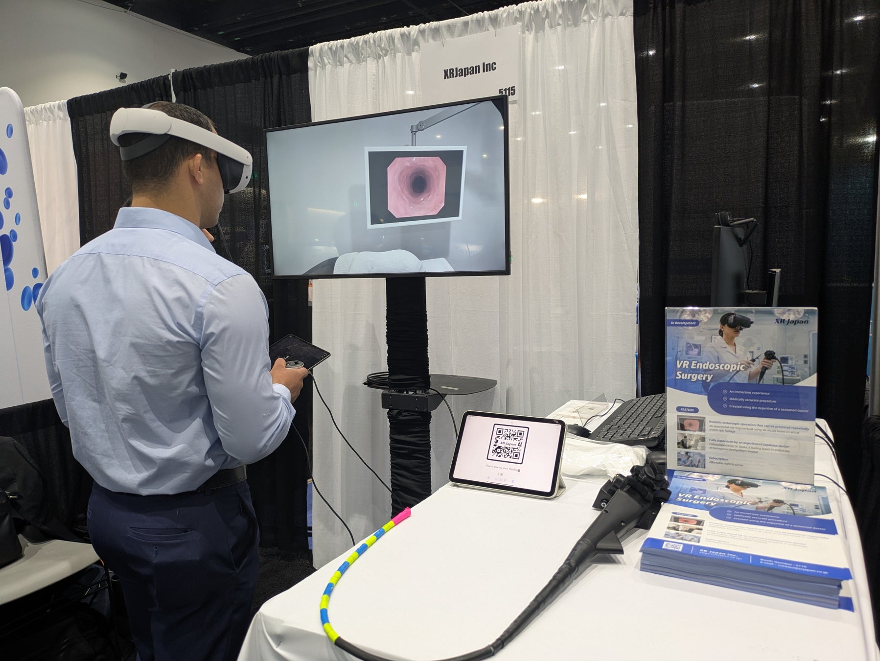 XR Japan株式会社(本社:東京都港区、代表取締役:立石 加代子、以下XR Japan)は、2025年5月3日~6日まで米国カリフォルニア州サンディエゴで開催された世界最大級の消化器関連学会「DDW(Digestive Disease Week)2025」(https://ddw.org/)に出展し、専用の内視鏡コントローラーとVR技術を組み合わせた内視鏡トレーニングシステムを発表しました。多くの医師が実際に体験し、高い関心と評価をいただきました。