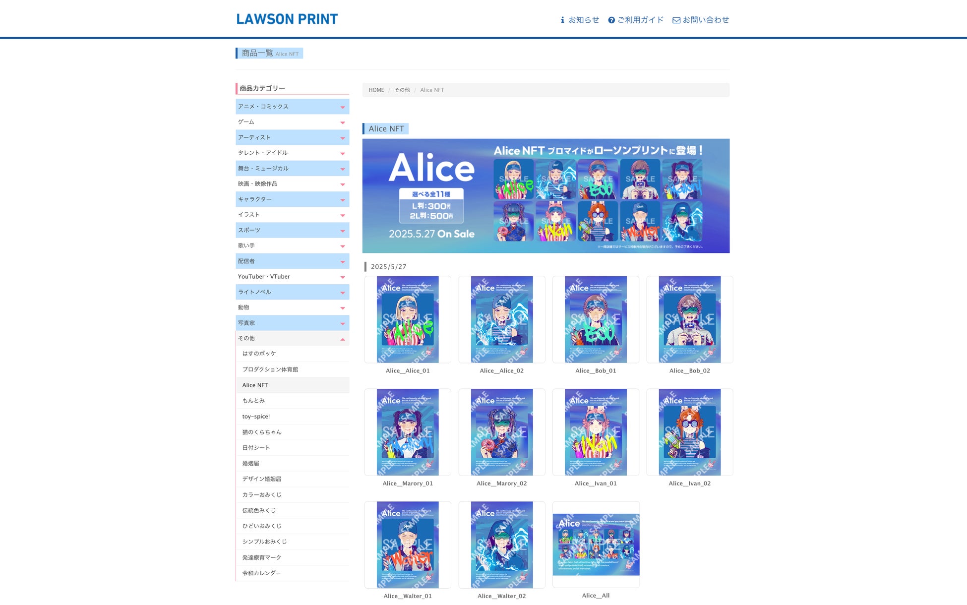 Alice NFT × LAWSON PRINTコラボ企画が5月27日からスタート 全国のローソン店内マルチコピー機にて、全11種類のオリジナルブロマイドが登場!