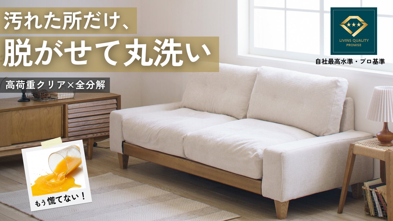 リビンズは、このソファ洗濯の絶望を解消すべく、服を洗うのと同じ感覚で、汚れたパーツだけを「脱がせて洗う」全分解構造を開発。子供がジュースをこぼしても「大丈夫、洗えるから」と笑顔で言える、心のゆとりを提供します。