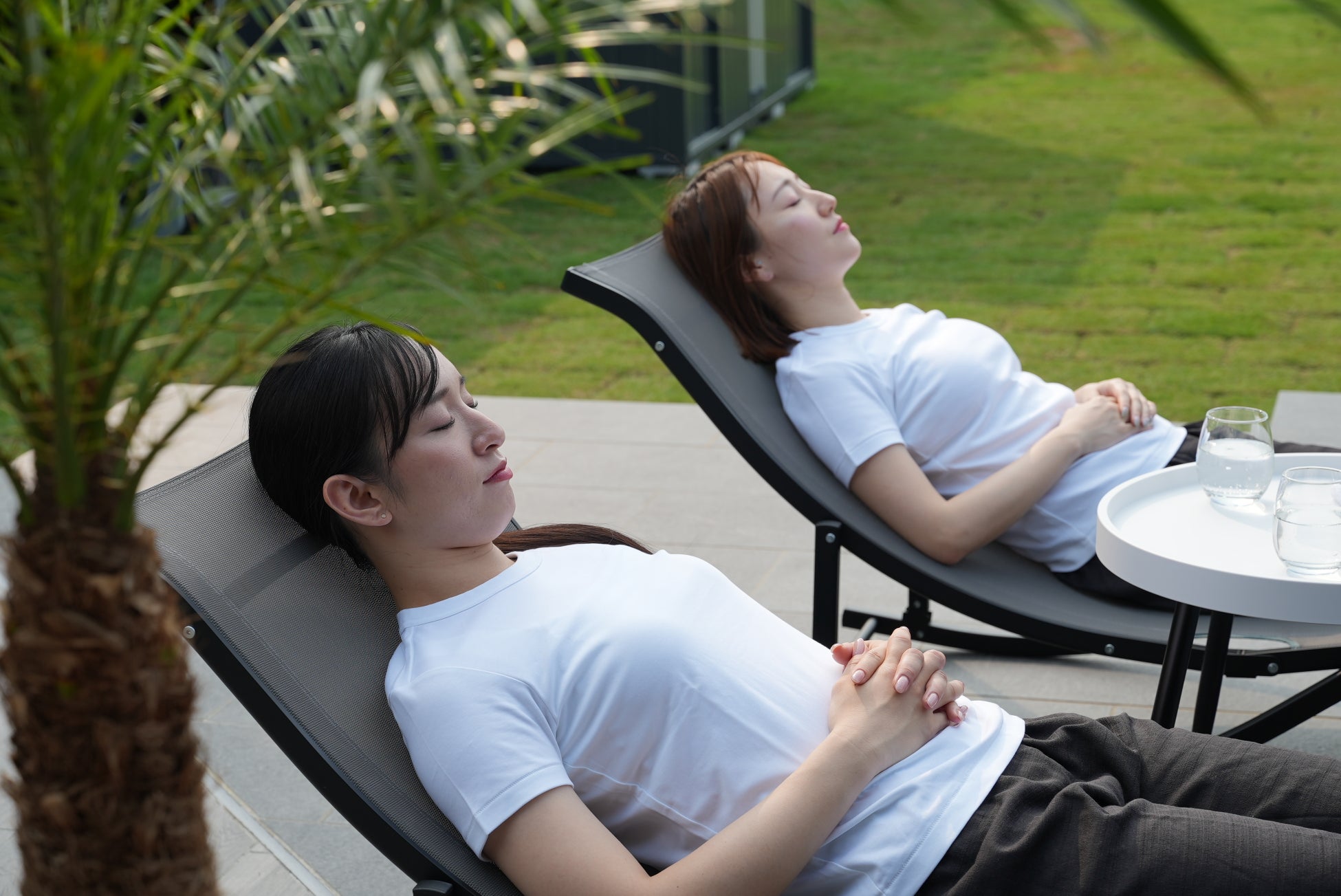 サウナ後はプール沿いの整い椅子に身を預け、琵琶湖からそよぐ風に包まれながら、極上の「ととのい時間」をお過ごしください。