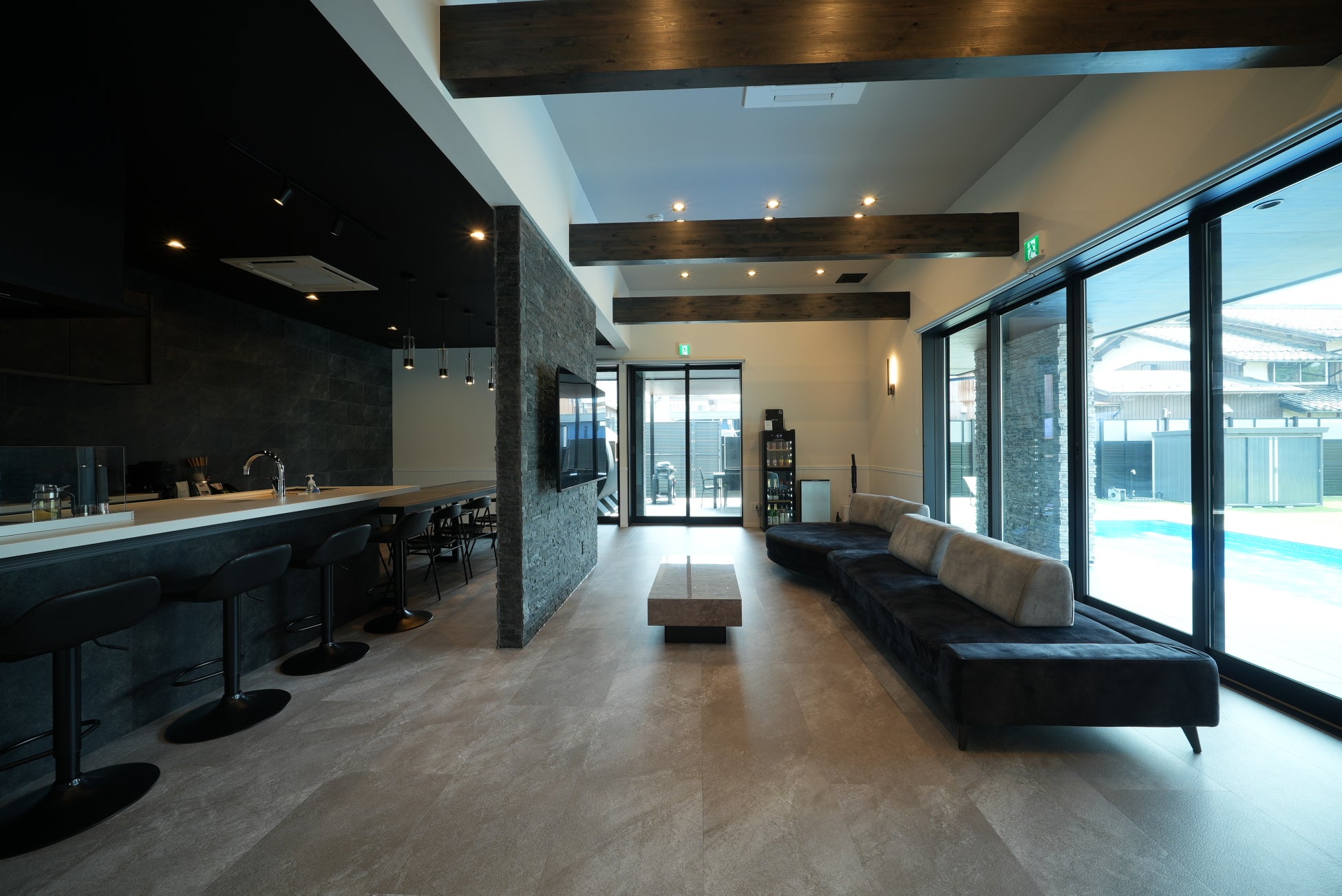 ソファに腰かけてプールを眺めたり、65インチの大画面で映画鑑賞を楽しんだり、愛犬とゆったり過ごしたりと、思い思いの時間をお楽しみいただけます。また、キッチンやダイニングエリアからBBQテラスへはシームレスな動線を確保。気の向くままにお食事やくつろぎの時間をお楽しみいただけます。