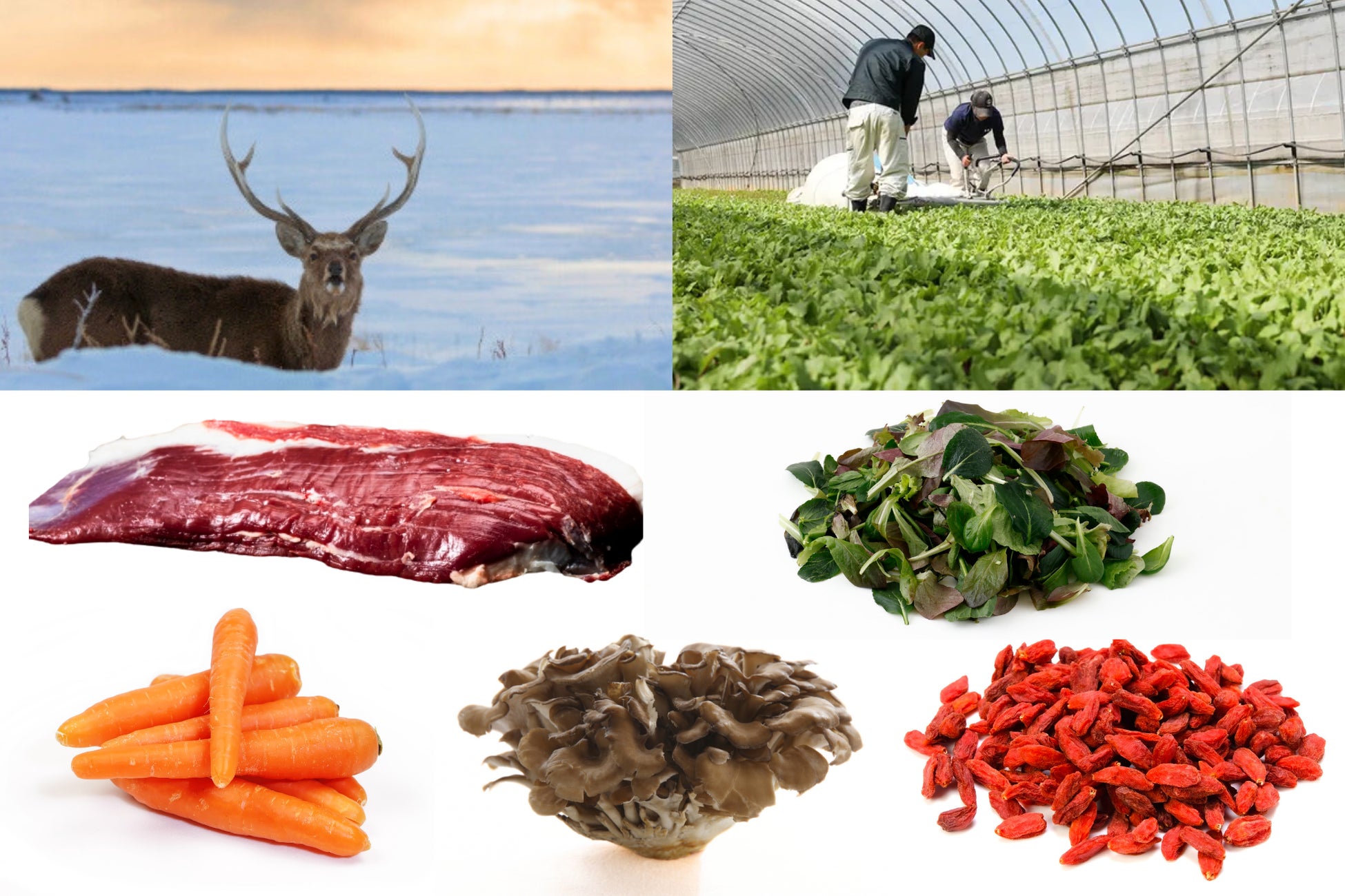 原材料:北海道産エゾ鹿肉、人参、舞茸、ベビーリーフ、クコの実