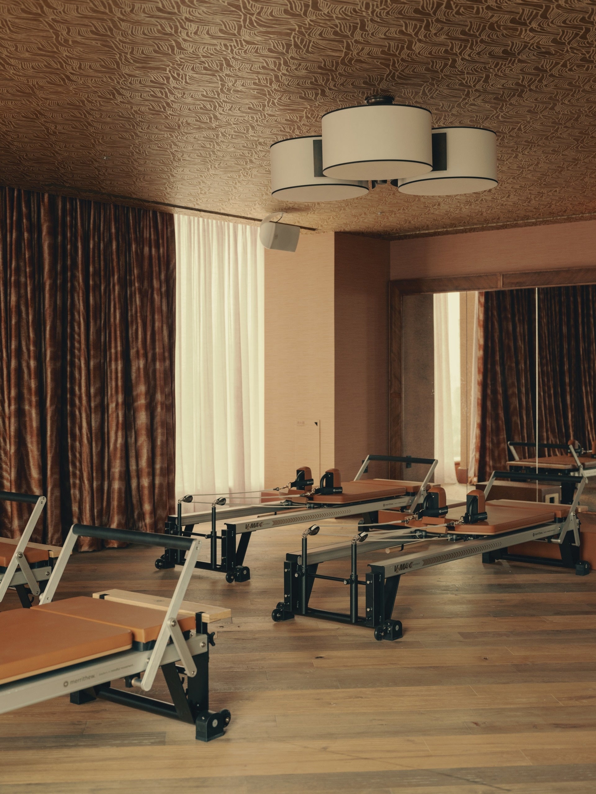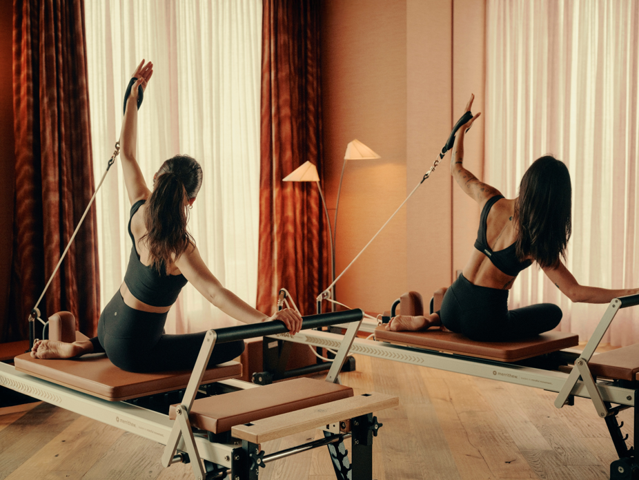 スタジオは、ピラティスやヨガ、ローインパクトHIITなどマットベースのプラクティスにフォーカスしたゾーンと、リフォーマーピラティスを中心に、カーディオトランプやジャンプボードを取り入れたダイナミックなセッションを行うゾーンの、2つの空間で構成されています。