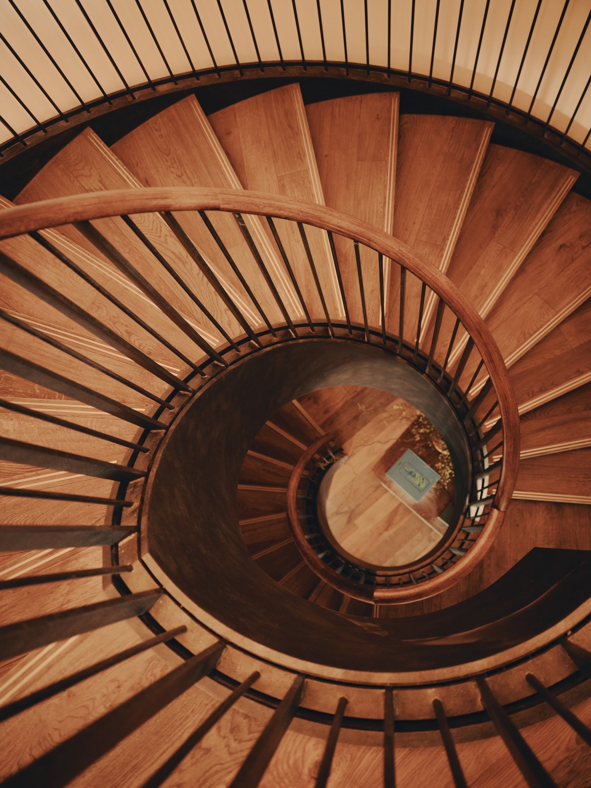 13階に位置するウェルネススタジオは、全面窓に囲まれ、開放感あふれる眺望を取り込みます。銅のニュアンスを帯びたテクスチャーが個性的な壁紙がその景色をやわらかく縁取り、彫刻的な木材のディテールやフルレングスミラーと調和。天井には、温かみのあるゴールドトーンで手描きされた特注の和紙クロスを施しました。
