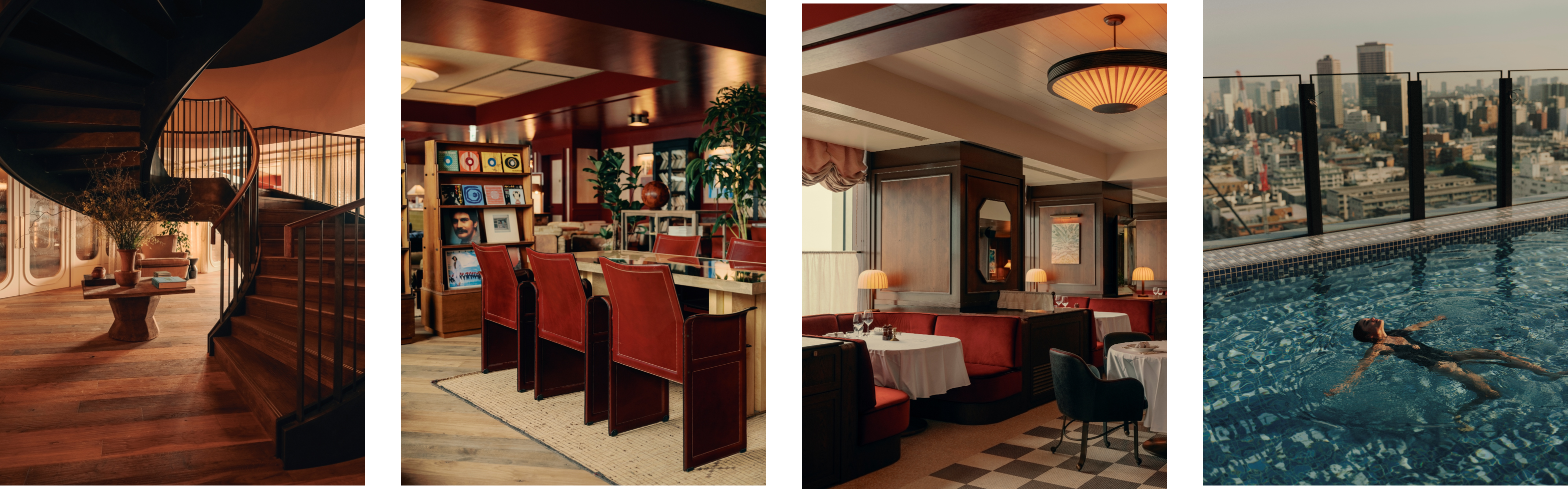 食事やドリンク、ワークシーンをシームレスに楽しめる2フロアのクラブスペースをはじめ、サンラウンジャーに囲まれたルーフトッププールとテラス、ウェルネススタジオ、イベントスペース、そして42の客室を備えています。