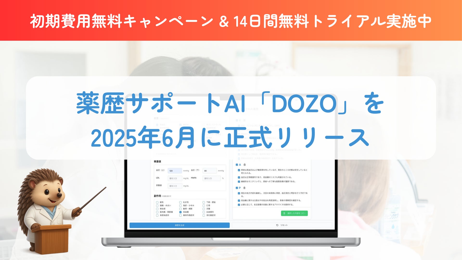 薬歴サポートAIシステム「DOZO」を2025年6月から提供開始。生成AIで薬局業務をもっとラクに。14日間無料トライアルも実施