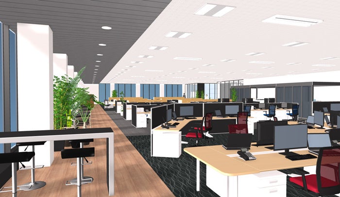 今回の移転プロジェクトを支えたのがオフィスレイアウトからプレゼンテーションまで行えるシミュレーションソフト「3Dオフィスデザイナー11 Professional EX」です。快適な操作性と多彩な表現力で、レイアウトからプレゼンまで行える機能を搭載しています。具体的には、躯体の作成やパース作成、什器の個数集計などが可能です。