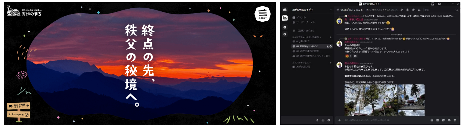 本プロジェクトの中心となるのがシティプロモーションWebサイト(以下:本サイト)「終点の先、秩父の秘境へ。おがのまち」です。本サイトでは、おがのまち在住の町民によって地元の視点で取材・執筆を行い、地域の自然や文化、日常の物語を伝える記事を順次公開していきます。さらに、町内外の参加者がリアルな地域情報を交換できる、Discordを活用したオンラインコミュニティ「おがの町民カイギ+」では、地域のリアルな話題をタイムリーに共有し、町内外の人々が自由に交流できる場を同時に公開、運用開始となります。これらの活動を通じておがのまちは、町民自らが発信主体となる“編集型まちづくり”を推進してまいります。