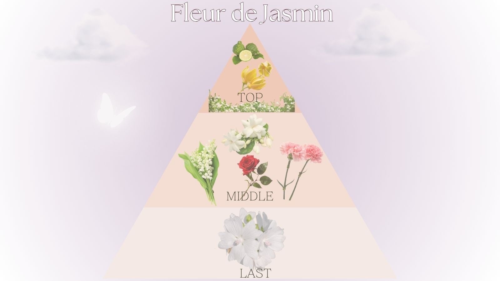 ミドルノート:ジャスミン、ローズ、ミュゲ、カーネーション