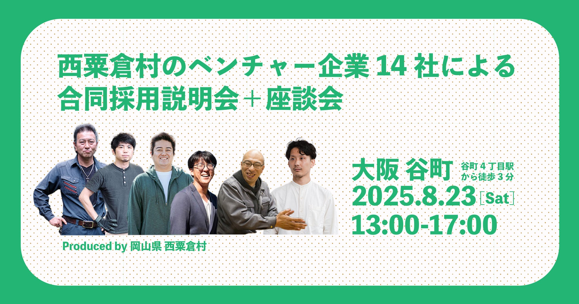 【当日参加OK】1300人のむら、岡山県北・西粟倉村のベンチャー企業18社による合同採用説明会+座談会を大阪・谷町にて8月23日(土)開催