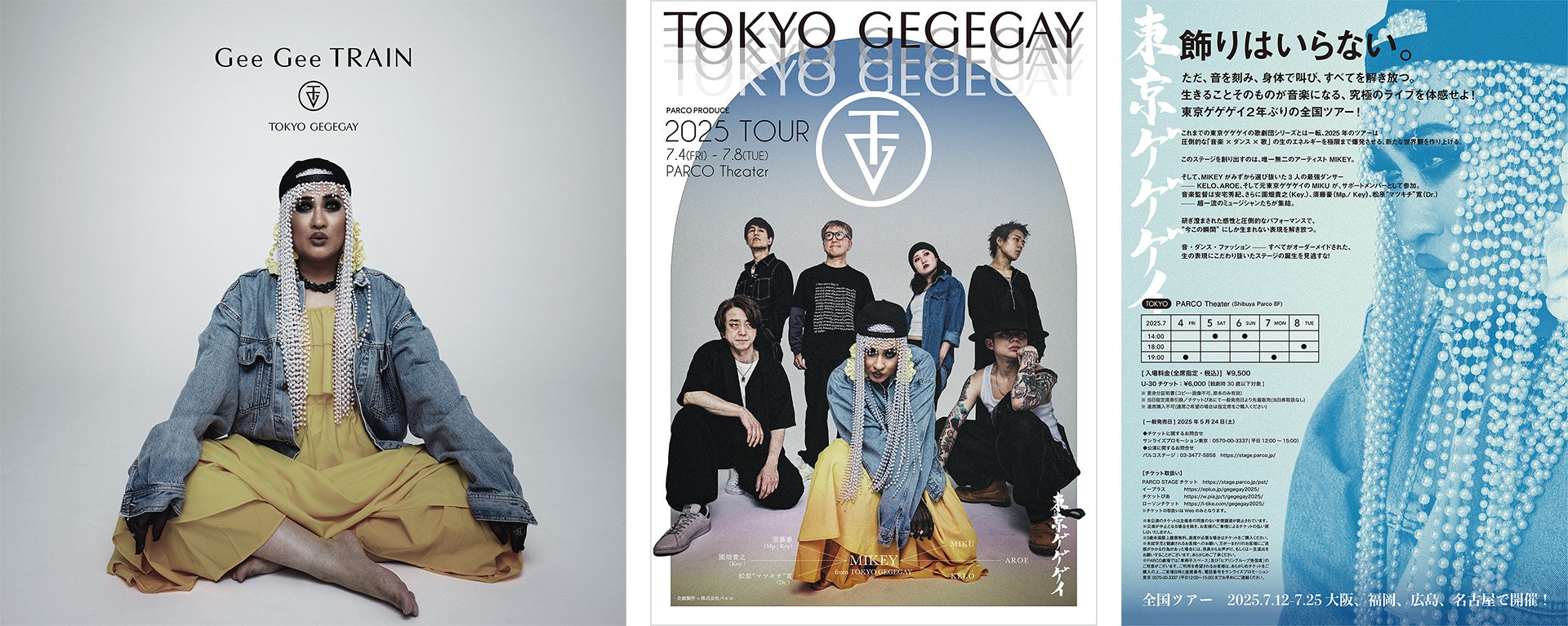 株式会社パルコは7月4日から25日にわたり全国5都市で「TOKYO GEGEGAY 2025 TOUR」を開催します。5月24日(土)*のチケット一般発売に先立ち、5月24日(土)0時(5月23日(金)24時)に、東京ゲゲゲイの新曲「Gee Gee TRAIN(ジージートレイン)」が配信リリース、併せて、MIKEY(マイキー) と、BE:FIRSTのRYUHEIが共同振付したミュージックビデオの配信が開始されます。