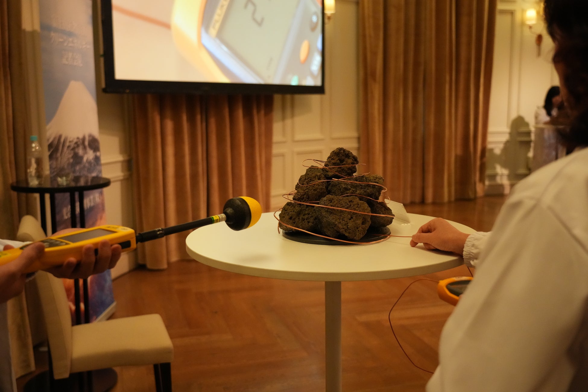 その結果、「高次太陽エネルギー」と「高次地心引力」を連結する技術によって、物質内部の粒子を活性化させ、異なる粒子同士の衝突によってエネルギーが放出され、富士山火山岩に内在する電粒子が誘導され、電磁場が発生する可能性が示されました。今回の発表会では、富士山火山岩によって電力を生成できる可能性があるという結果のみが公開され、実験過程や商業的な技術内容は非公開となっています。