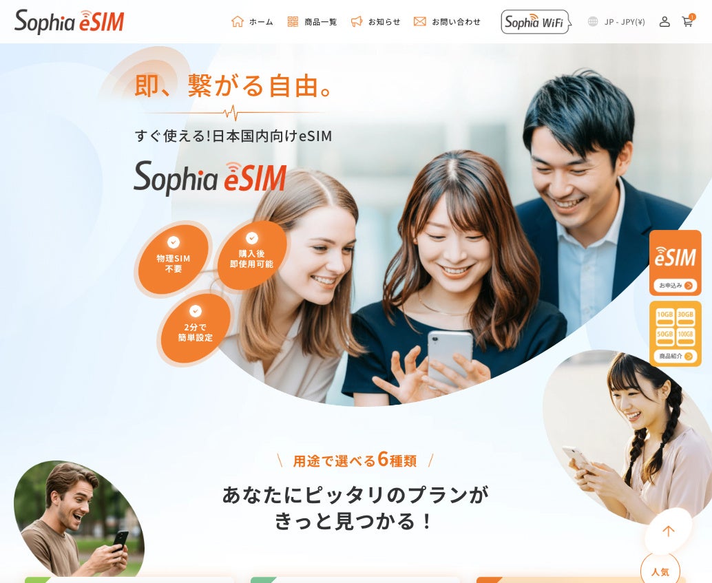 株式会社ソフィア(本社:大阪府大阪市、代表取締役社長:一坂 正和)は、この度、手軽さと柔軟性を追求した国内向けeSIMサービス「Sophia eSIM(ソフィア イーシム)」の提供を2025年11月20日より開始いたしました。