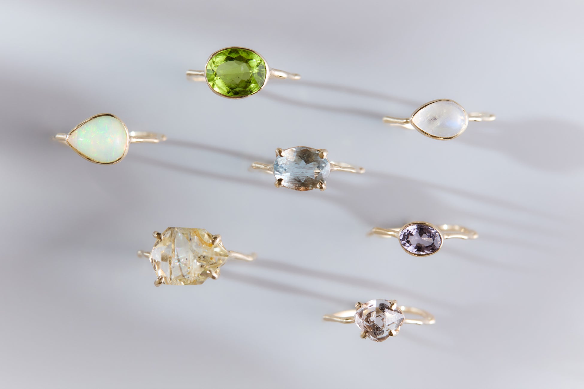 シルバー素材の大振りなファッションジュエリーやK10、K18の華奢なコレクション、天然石を使った1点モノやブライダルラインなど幅広く展開